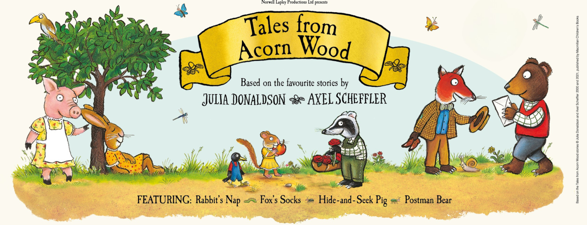 Julia Donaldson and Axel Scheffler’s beloved Tales from Acorn Wood stories are brought to life on stage for the first time in an enchanting lift-the-flap experience.